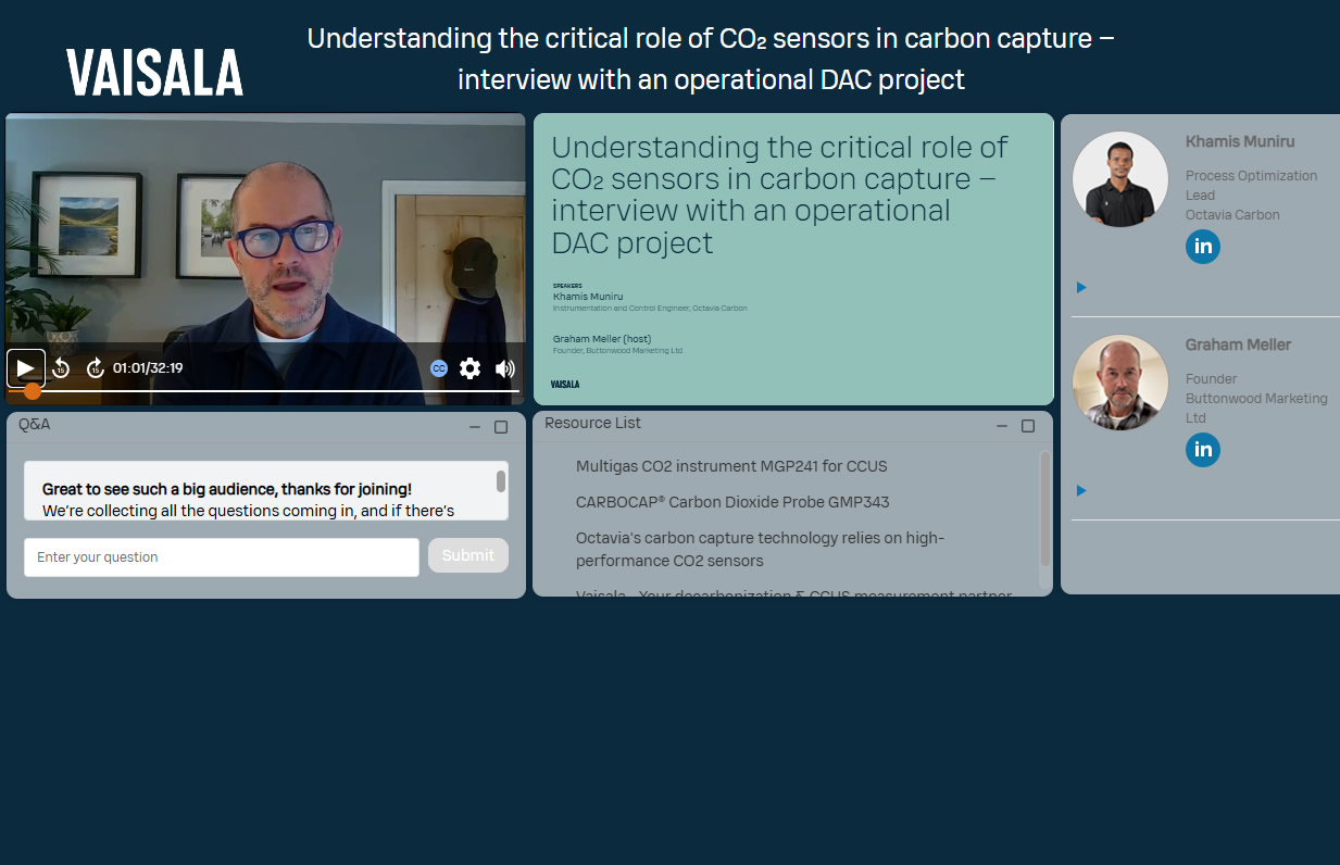 Vaisala’s Product Line Manager Antti Heikkilä says: “We are delighted to be able to help Octavia Carbon with this exciting project. Our unique CO2 probes were developed specifically for challenging applications such as this. However, with ‘Taking Every Measure for the Planet’ as our Core Purpose, this project is a perfect example of the ways in which Vaisala’s measurement technology is helping to fight climate change.”